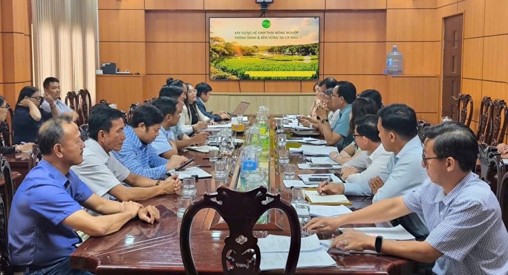 Công ty TNHH Hữu cơ Toàn Cầu làm việc với đại diện các sở, ngành tỉnh Cà Mau. Ảnh: Võ Hà.